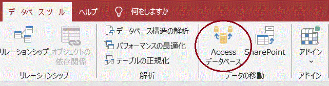 「データベースツール」の「Accessデータベース」をクリックします。