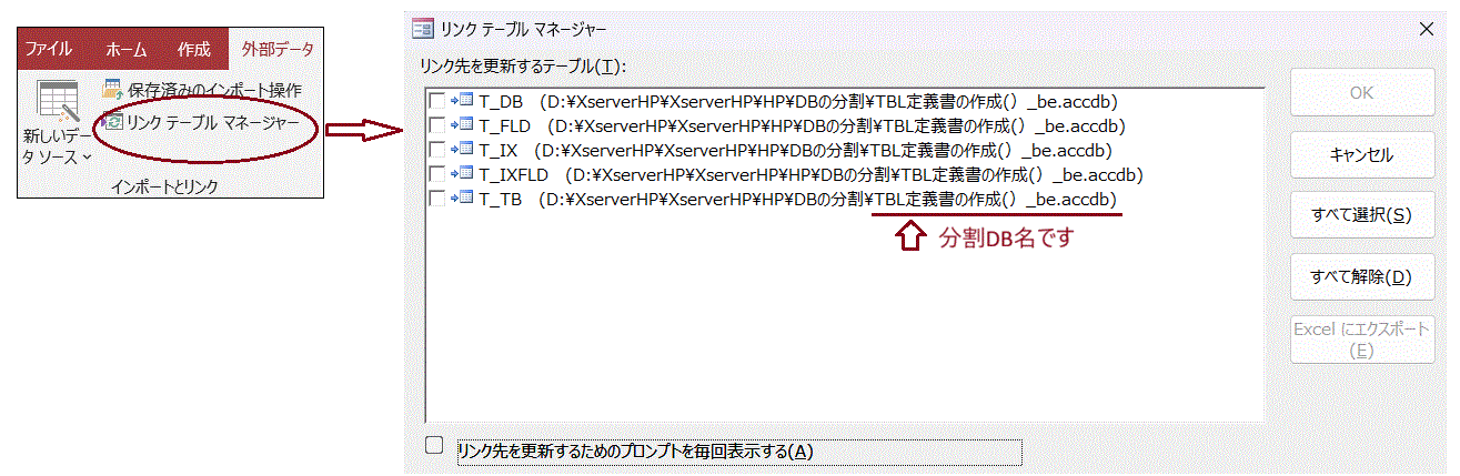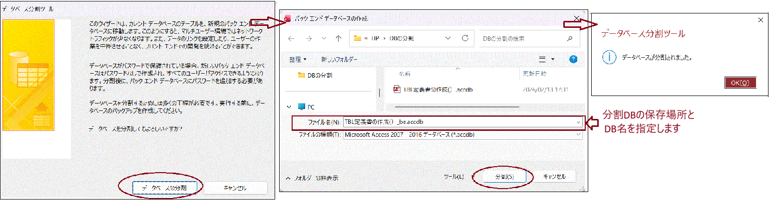 1.AccessDBの分割手順
