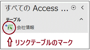⑤リンクテーブル名の前に矢印が追加されます。リンクテーブルマークです。