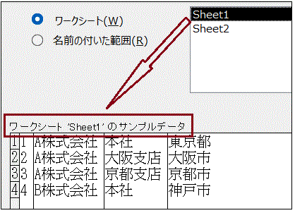 ①選択したExcelファイルの登録内容が表示されますので、取り込むシートを選択します。