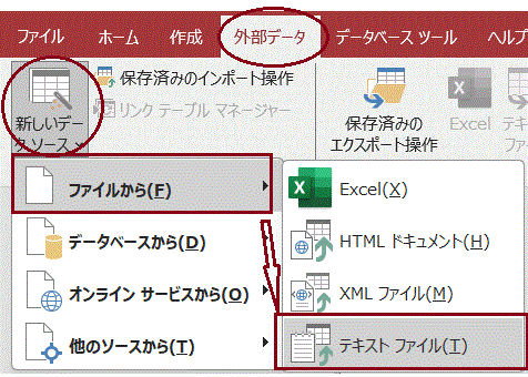 Excelで管理している表データや、他システムのデータをテキストファイルに落としてAccessに取り込むと、データベースとして管理することができるようになります。